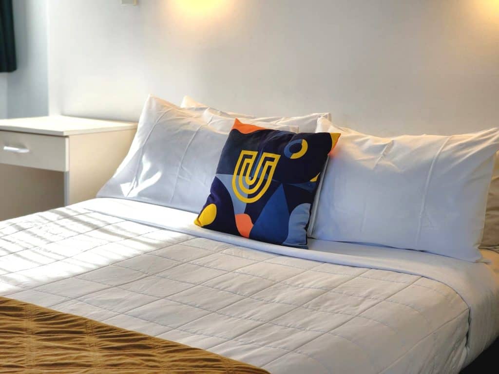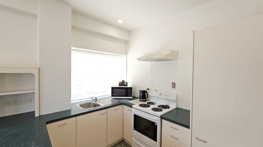 Secure uncovered parking is available at the rear of the building. For your security, the roller door shuts between 7.00 pm and 6.00 am. If you need to exit after hours, the door operates on a sensor to open. If you are arriving late, please park on the street. Please note: Vehicles that are too large (e.g. camper-vans) will need to park on the street.