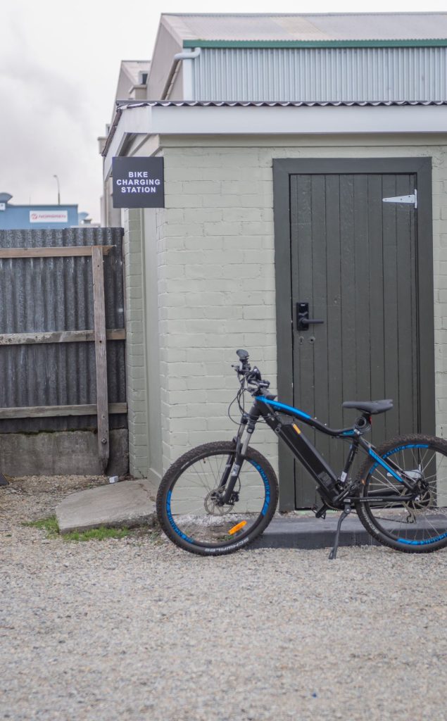 We offer complimentary E-bike charging for upto 12 bikes at a time in our lockable charging station.