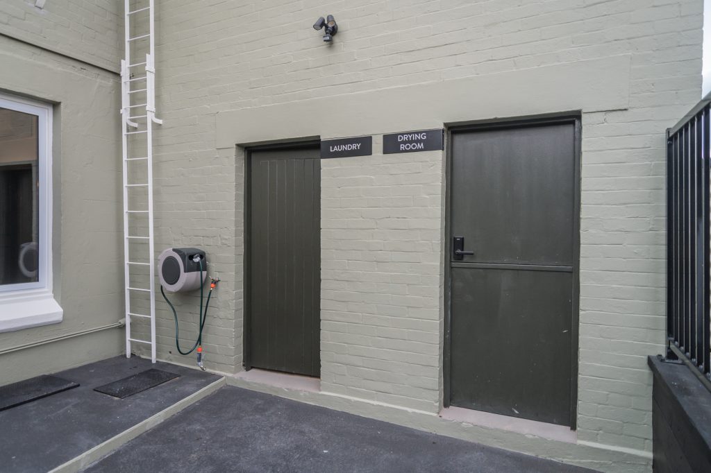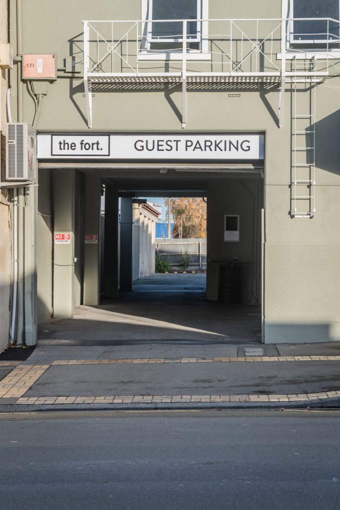 Secure uncovered parking is available at the rear of the building. For your security, the roller door shuts between 7.00 pm and 6.00 am. If you need to exit after hours, the door operates on a sensor to open. If you are arriving late, please park on the street. Please note: Vehicles that are too large (e.g. camper-vans) will need to park on the street.